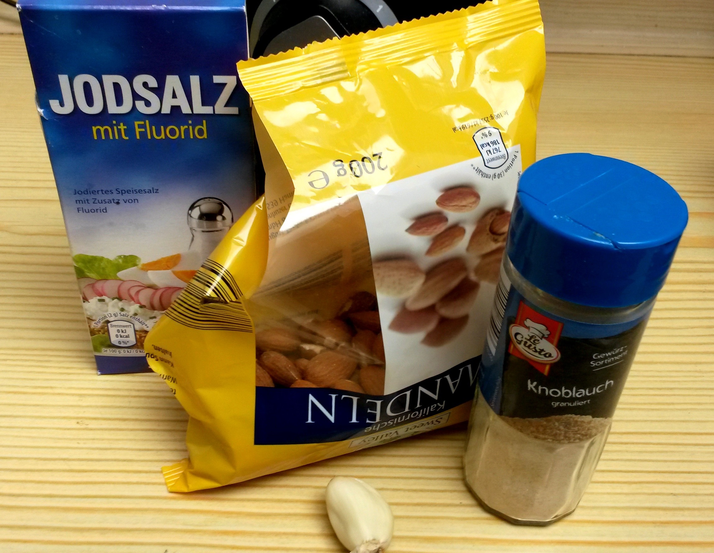 - Knoblauch, entweder frisch als Zehe oder mit Knoblauchpulver geht auch