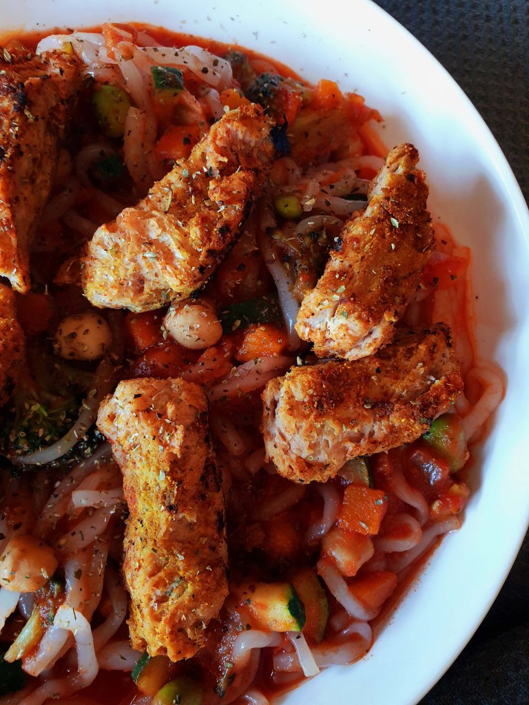 - 80–100 g Sojageschnetzeltes (trocken, z. B. aus dem Bio-Markt)
