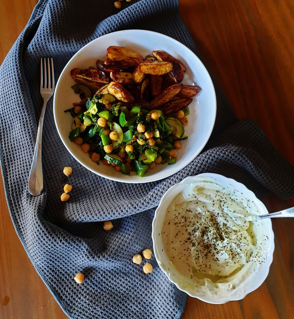 Vegetarische Ofenkartoffeln mit Kräuterquark & Gemüse