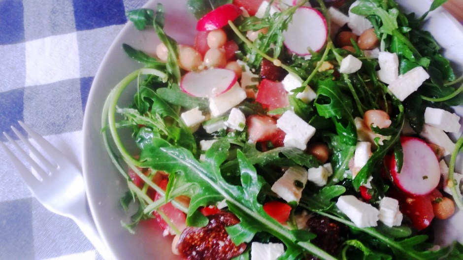 Heute gibt es mal ein vegetarisches Rezept für einen leichten Sommersalat. Denn gerade an den etwas wärmeren Tagen ist so ein bunter Salat einfach nur herrlich erfrischend. Und da mich neulich der Ruccola und Radieschen im Supermarkt angelacht haben, musste ich die einfach auch gleich entsprechend verwerten ;).